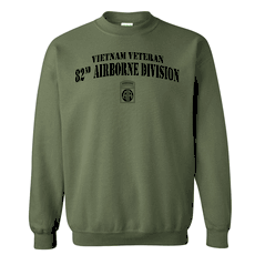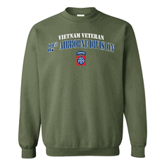 Please enjoy this US Army officially licensed 82nd Airborne Division Vietnam Veteran OD Green Subdued Hooded Sweatshirt. It is 70-30% Cotton/Poly pre-shrunk Premium Cotton Adult Sweatshirt and is available in S, M, L, XL, 2X and 3X sizes. The Hoodie has a contrast dark grey flatcord and a Pouch pocket.