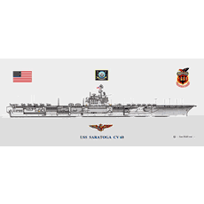 USS Saratoga CV-60 with Gold Aviator Wings Print