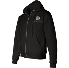 This Officially Licensed Product is direct embroidered onto a 9.5 oz 50/50 Cotton Poly blend Full Zip Hooded Sweatshirt. These Hoodies are custom embroidered at our facilities in USA.