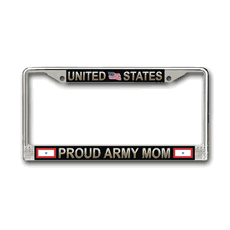 This Officially Licensed US Army Mom Two Star Service Banner License Plate Frame is Sublimated and Assembed from high quality finished metal alloy with UV resistant graphics. These frames serve as a great looking holder for displaying your License Plate. Fits all standard US cars and trucks and shows your pride and service in the United States Army.