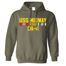 USS Midway CVA-41 With Vietnam Service Ribbons OD Green Center Chest Hooded Sweatshirt