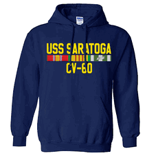 USS Saratoga CVA-60 With Vietnam Service Ribbons Center Chest Hooded Sweatshirt