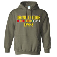 USS Valley Forge LPH-8 With Vietnam Service Ribbons OD Green Center Chest Hooded Sweatshirt