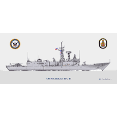 Please enjoy this USS Antrim FFG-20 Print by world renowned military artist Wing Cdr Ian Hall MBE. The print image is 17 x 6.5 - 7 in. on 19 x 13 in. glossy heavy weight photo paper. Print comes unframed. This print is usually shipped in 2-5 business days and carries a 100% customer satisfaction guarantee.
